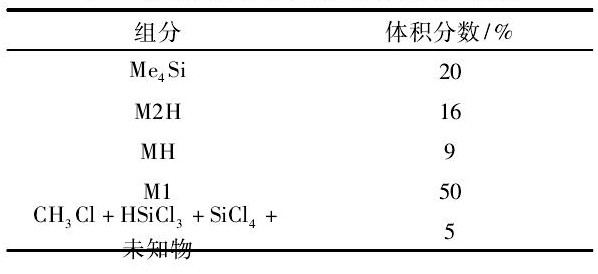 將低沸物與一甲基三氯硅烷 (M1) 混合并作為有機硅低沸物歧化反應(yīng)的原料, 各原料大致的體積分?jǐn)?shù)見表1。
